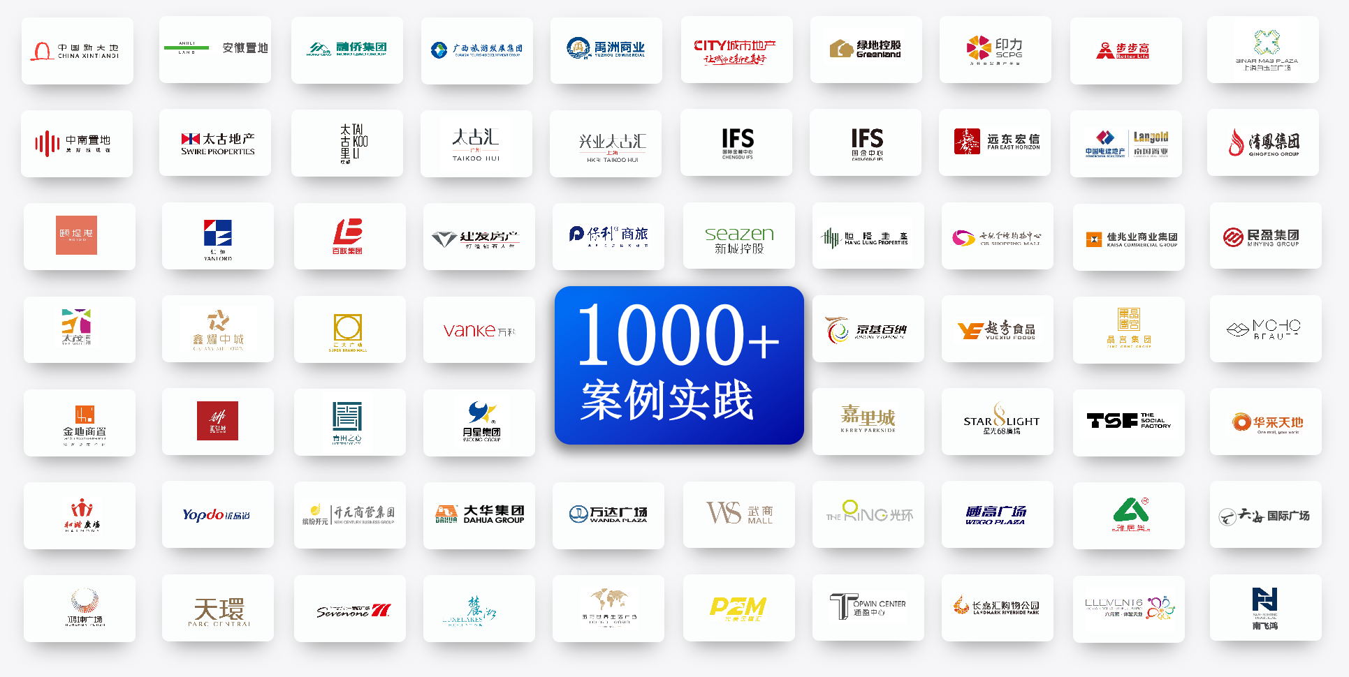 近30年來,團隊服務行業(yè)客戶已突破1000家,在商業(yè)地產行業(yè)Top50企業(yè)中,海鼎科技客戶覆蓋率達60%,包括:恒隆地產、太古地產、九龍倉集團、印力集團等知名企業(yè),擁有前沿、可靠的商業(yè)地產數(shù)字化建設經驗。